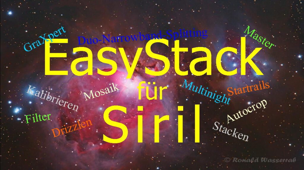 Das Siril 1.4 Python-Skript „EasyStack“ wurde von mir erstellt, um dem Siril-Anwender die Arbeit extrem zu erleichtern. Das Erstellen von Sequenzen und die Wahl der vielen Siril-Optionen ist für den „Normalanwender“ und vor allem für den Astrofoto-Neuling doch sehr kompliziert und verwirrend. Durch „EasyStack“ werden die allermeisten der alten Skripte überflüssig. Weiterlesen…