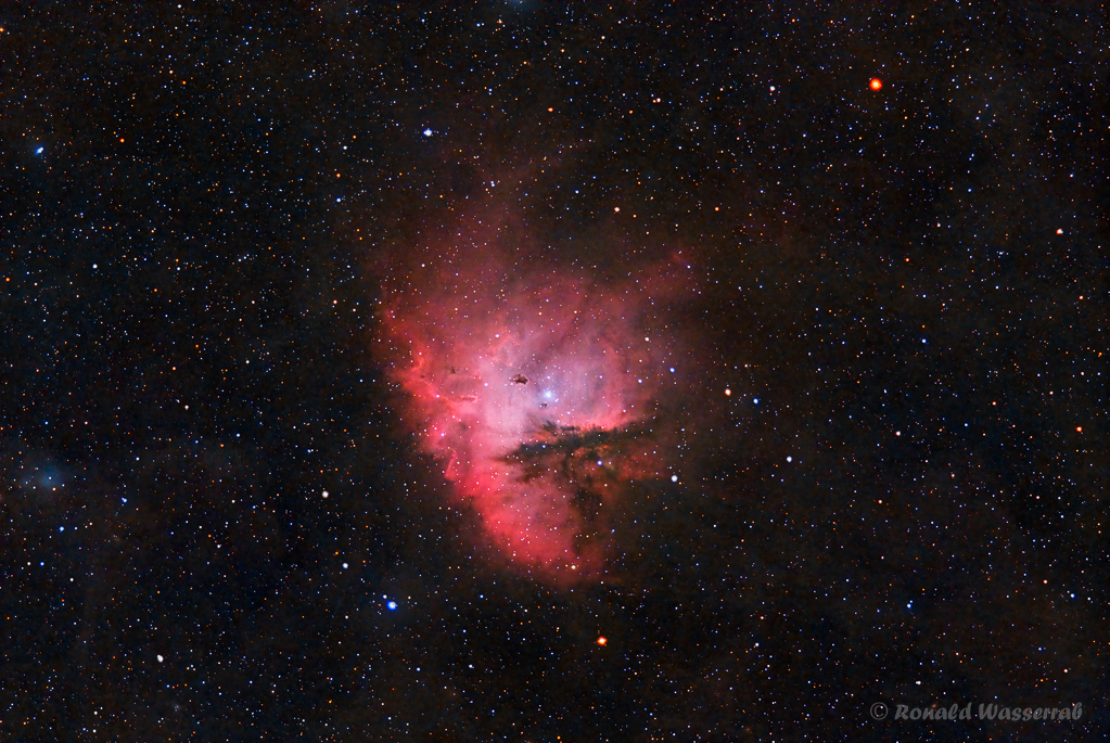 Ein weiteres Astro-Fotografie-Objekt, welches ich im Sommer 2023 aufnehme, ist der Pacman-Nebel (NGC 281) im Sternbild Kassiopeia. Der 9500 Lichtjahre von der Erde entfernte Emissionsnebel hat seinen Namen von der Ähnlichkeit mit der Pillen fressenden Spielfigur Pac-Man.
