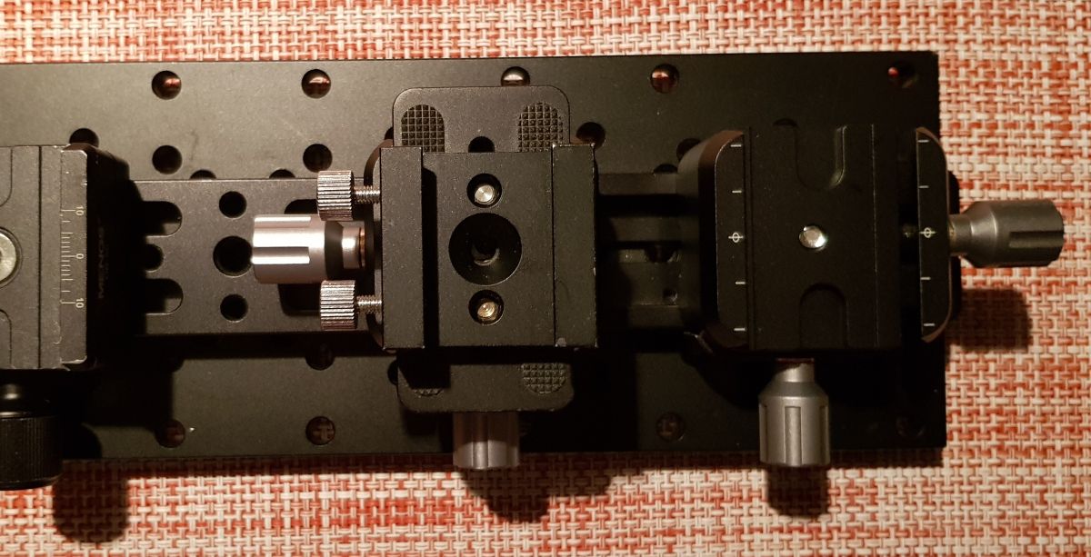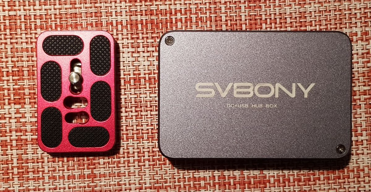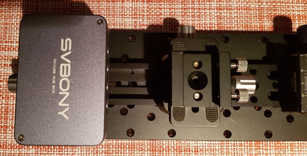 Auch den Svbony-Verteiler habe ich auf eine kleine Kameraplatte geschraubt und in einer der Doppelklemmen festgeklemmt.