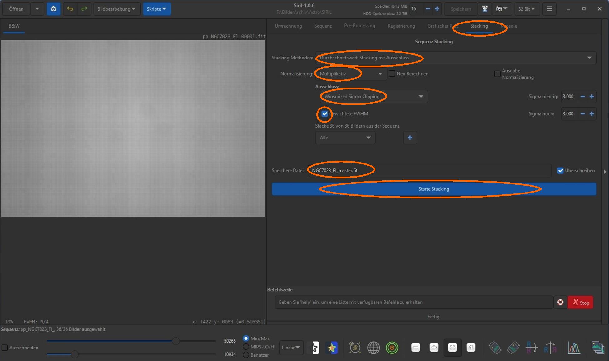 SIRIL-Stacking mit Sequenzen – Master-Dateien erstellen (Stacking)