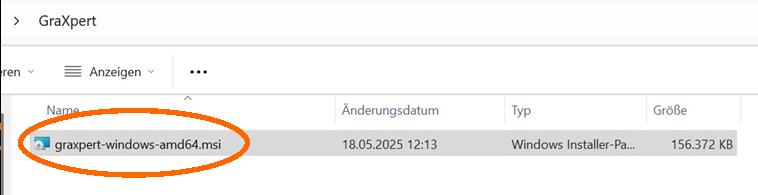 In Siril ist zwar ein Python-Skript „GraXpert-AI.py“ vorhanden, verlangt aber für die Nutzung des AI-Modells den Verweis auf die GraXpert.exe. Deshalb sollte auch GraXpert für die AI-basierte Gradientenentfernung und Rauschreduzierung installiert werden. Wir finden es auf folgender Website: „graxpert.com“. Dort die betreffende Version (z.B. „Windows AMD64“) herunterladen und zur Installation aufrufen.