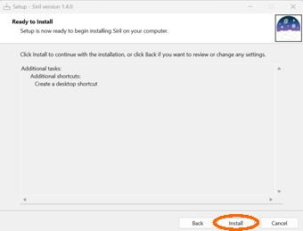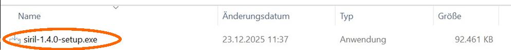 Per Doppelklick auf die „siril-1.4.0-setup.exe“ wird der Installationsvorgang gestartet. Eine bereits installierte ältere Siril-Version wird dabei automatisch deinstalliert, jedoch bleiben die Einstellungen erhalten.