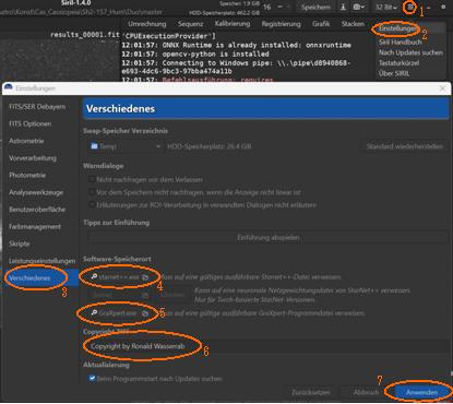 SIRIL-Anleitung: Copyright, Speicherorte der GraXpert.exe und Starnet++.exe eintragen