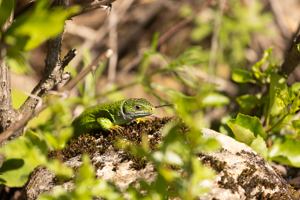 Zuerst entdecken wir die Eidechsen. Die Männchen beginnen zwar schon langsam, ihr Paarungs-Blau anzusetzen, aber bis zur Hoch-Zeit wird es noch einige Tage dauern.
