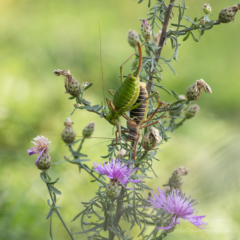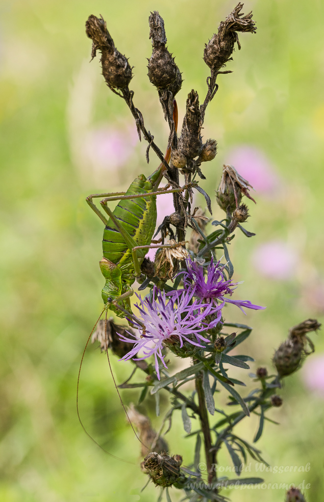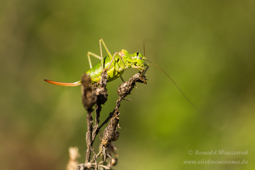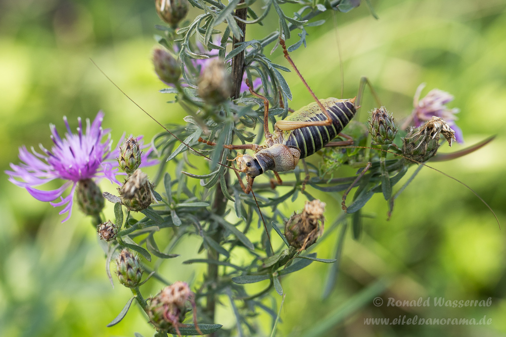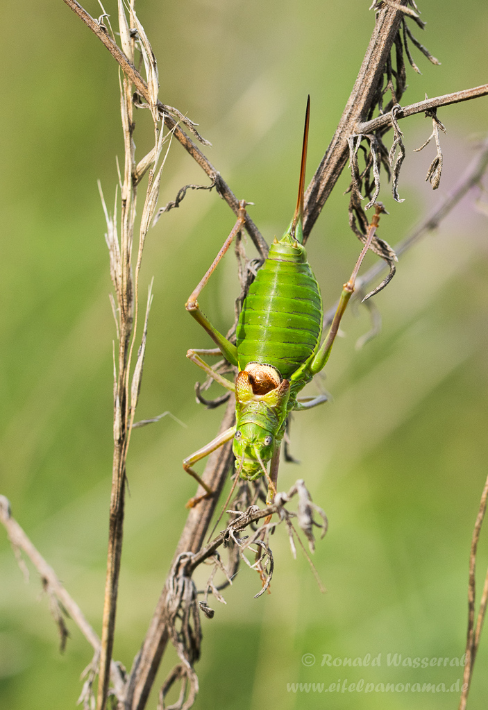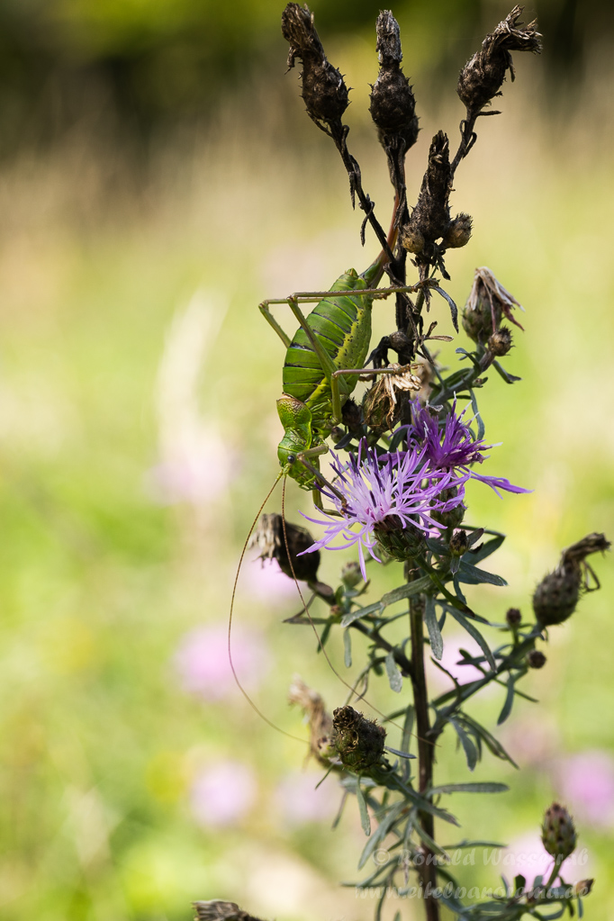 Die Sattelschrecke ist ein recht großes Insekt, aber auch sehr selten. Bei uns gibt es sie noch an der Mosel. Mein französischer Freund Florian hat sie aber im Elsass, am Fuße der Vogesen aufgespürt.