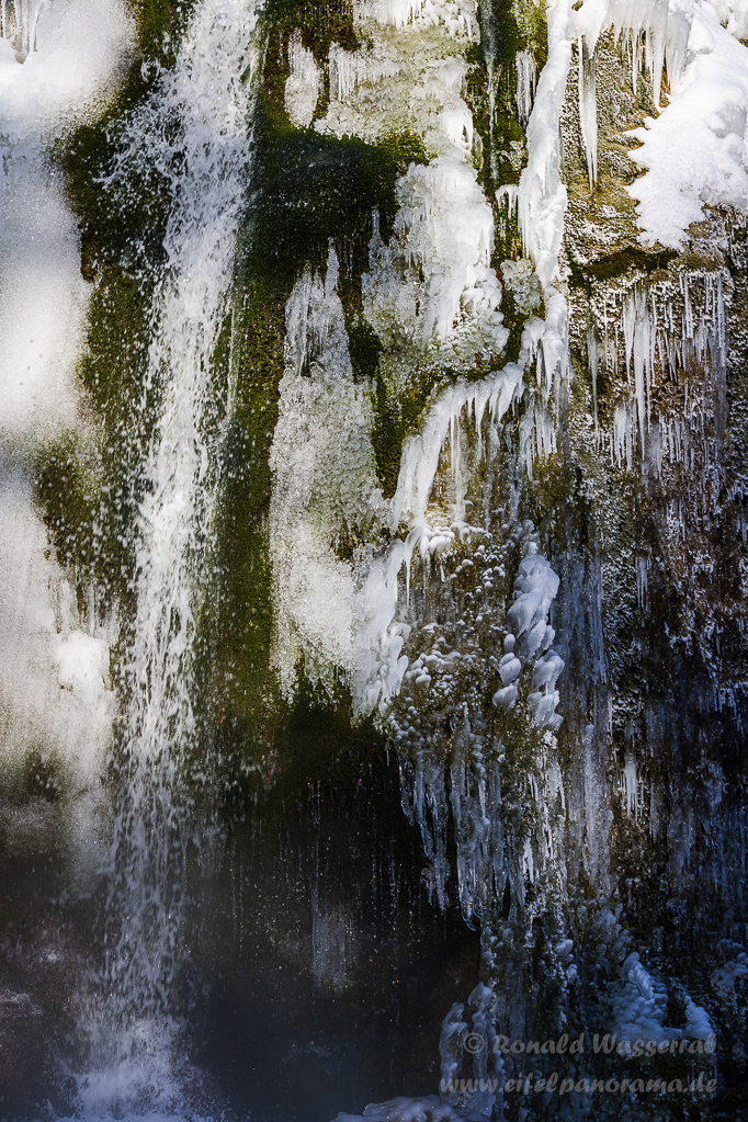 Dreimühlen-Wasserfall  - Die Eiszapfen sehen wie überdimensionierte Zähne aus