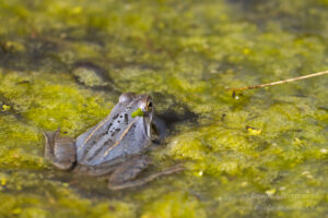 Zwar habe ich die Moorfrösche (Rana arvalis) schon öfter fotografiert (siehe: „Rhapsody in Blue – Moorfrosch-Balz im Münsterland“ und „Blaue Frösche – Der Moorfrosch küsst nur, wenn er blau ist“), aber Florian hat sie noch nicht vor die Linse bekommen und ist ganz scharf darauf. Natürlich habe ich gewisse Bedenken, denn Florian ist Franzose und ich habe Angst, dass die armen Frösche nachher ohne Schenkel im Teich umhertreiben…