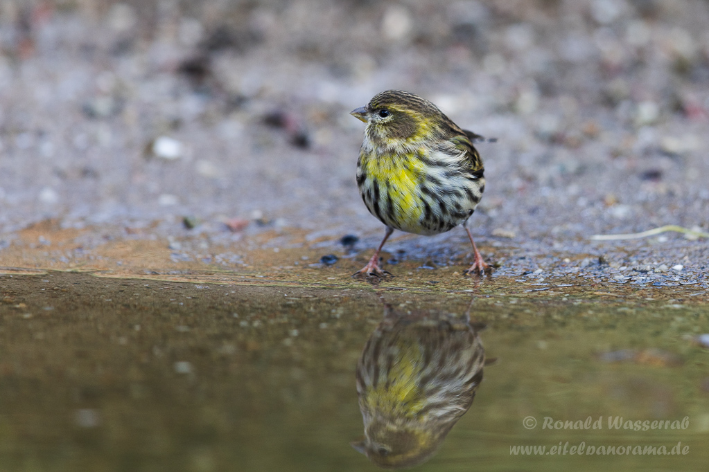 Immer mehr gefiederte Wesen konsultieren den Teich. Insbesondere die Kreuzschnäbel brauchen nach dem Fressen stets ein Getränk. Und der Girlitz schleicht sich immer heimlich von der Seite an das Gewässer heran.